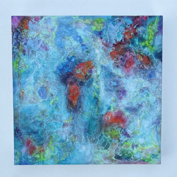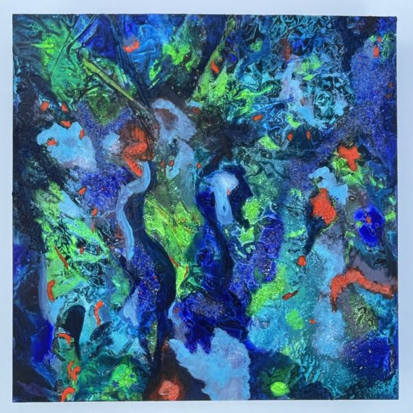 My art is within the field of abstraction. Inspired by nature and by water in our surroundings, I seek to create artwork that expresses movement and is directed by color and light. Bright colors are an important element in my creation. Blue is the predominant color I use in my work, because it is often associated with the sea and sky, or heavens. Through the use of color, shape and patterning, and by using different materials, I strive to express energy and gestural quality in my paintings and mosaics to investigate the notion of transforming subjective ideas into objects of art.