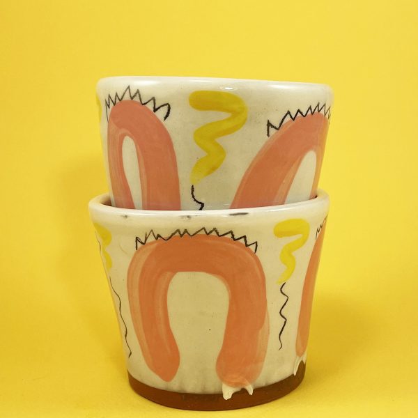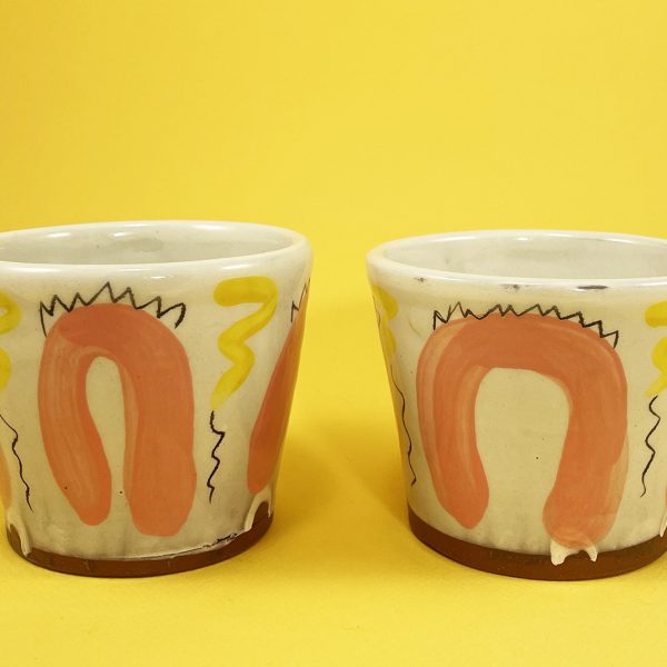 Cup set – perfect for sharing your favorite cocktail with a friend! Each are 3″x3.5″x3.5″, mid-range earthenware with white slip