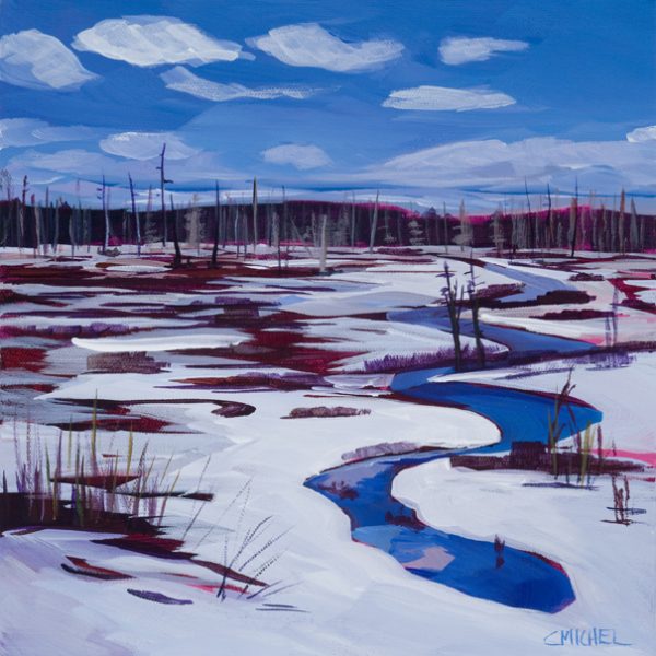 Original acrylic painting, painted on location, gallery wrapped canvas, painting continues around the edges, framed in a custom wood frame by Ocean House Gallery, silver leaf face, ready to hang. canvas size 8″ x 16″ x 1.5″