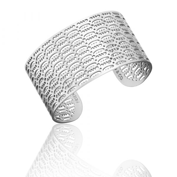 The intricate pattern in this cuff is inspired by the Adinkra symbol “Nkotimsefo Mpua,” meaning “The hairstyle of the court attendants.” It is a symbol of loyalty and readiness to serve.