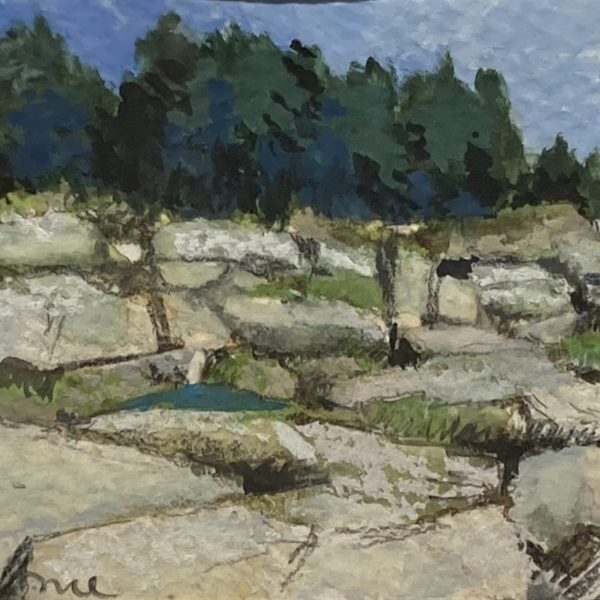 2-1/4 x 3/14 inch painting on paper, framed and under glass. 2017.