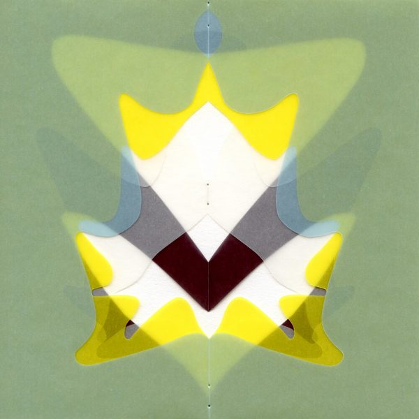 This original collage is created with layers of hand-cut translucent vellum from Gmund, and hand-stitched with monofilament to Stonehenge paper.
