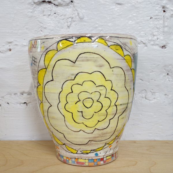 Yunomi Cup , Glaze fired earthenware, 2021, 4.5” tall x 4” wide at the top. This hardy cup is super versatile and feels great in your hand. Great for hot bevies or it can hold an entire can of beer. Holds 13 fluid ounces.